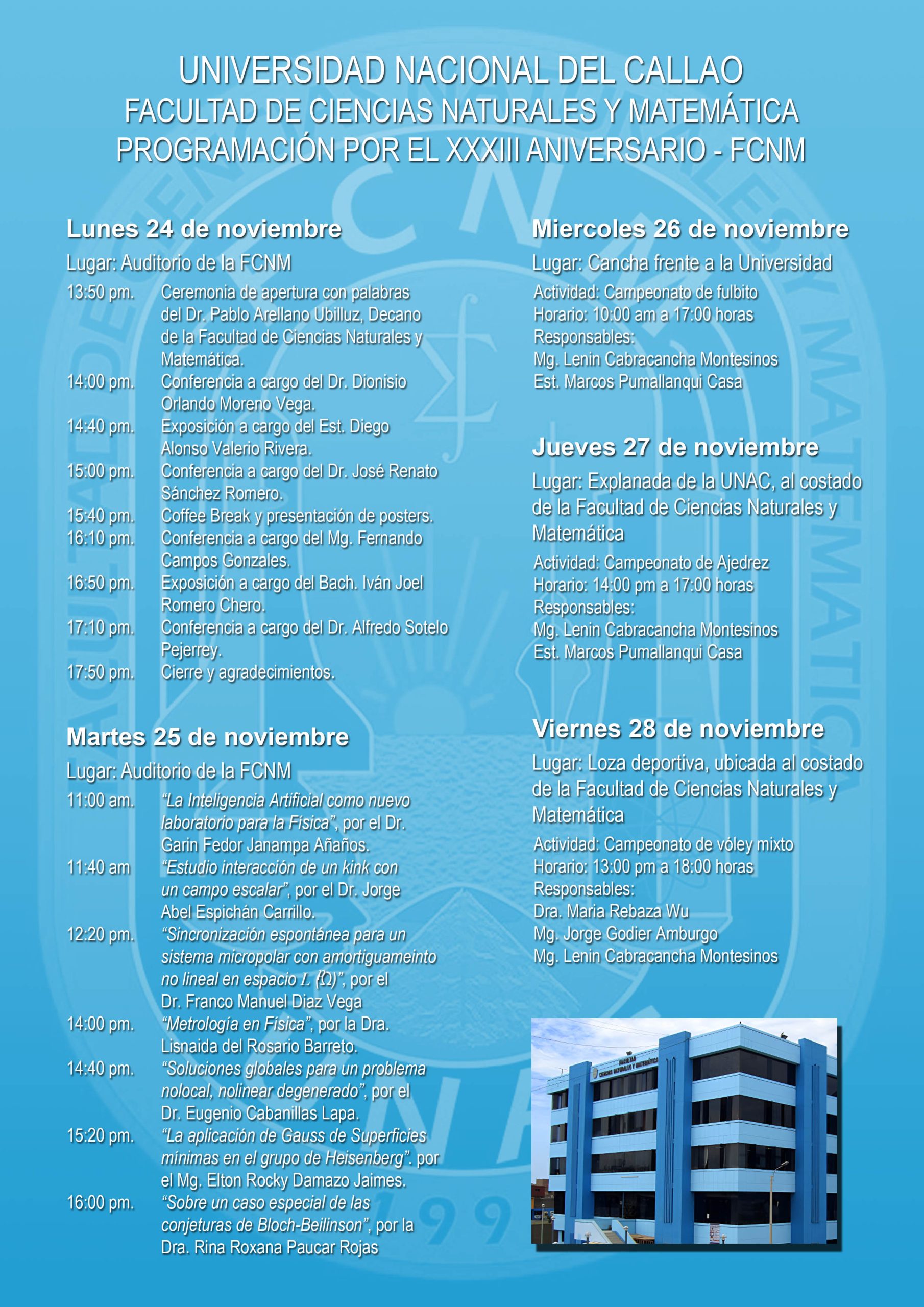 La Facultad de Ciencias Naturales y Matemática de la Universidad Nacional del Callao es una institución académica de prestigio ubicada en la ciudad de Callao, Perú. La facultad tiene como objetivo brindar educación superior en disciplinas relacionadas con las ciencias físicas y matemáticas.
