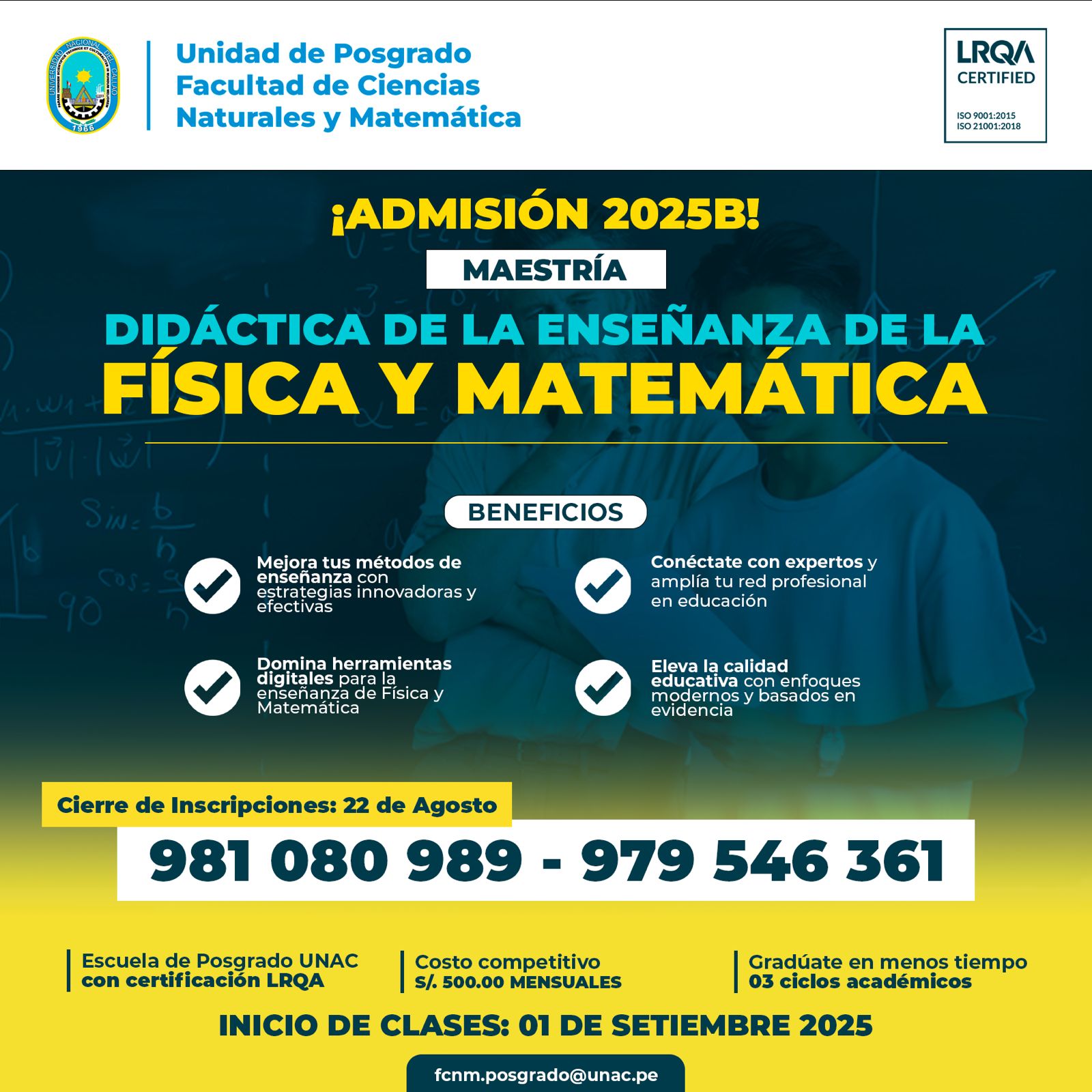 MAESTRÍA EN DIDÁCTICA DE LA ENSEÑANZA DE LA FÍSICA Y MATEMÁTICA