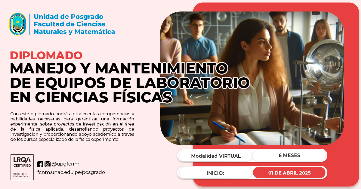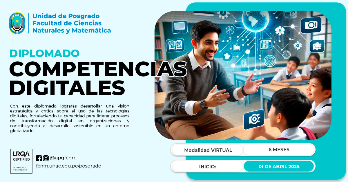 La Facultad de Ciencias Naturales y Matemáticas se enorgullece en presentar su innovador enfoque en la creación de nuevos diplomados, diseñados para apoyar y potenciar la formación de profesionales comprometidos con la excelencia en la enseñanza y la investigación científica.