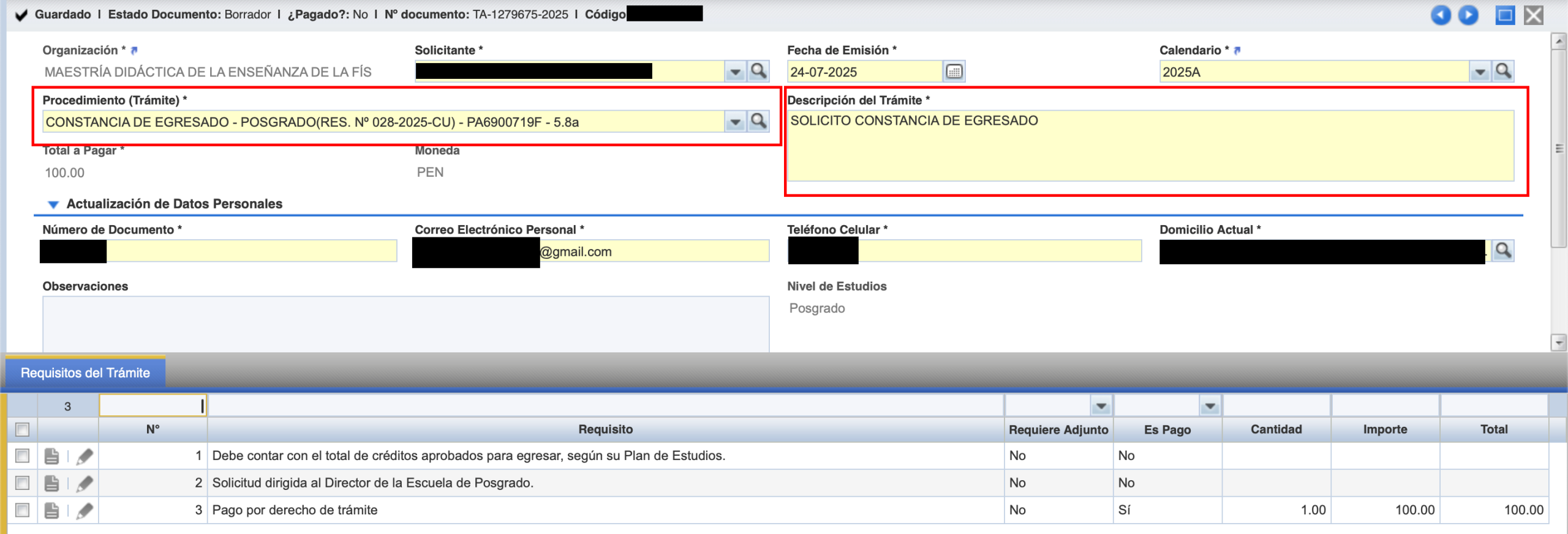 Llenar sus respectivos datos, darle al boton de guardar, y en Tramitar.
