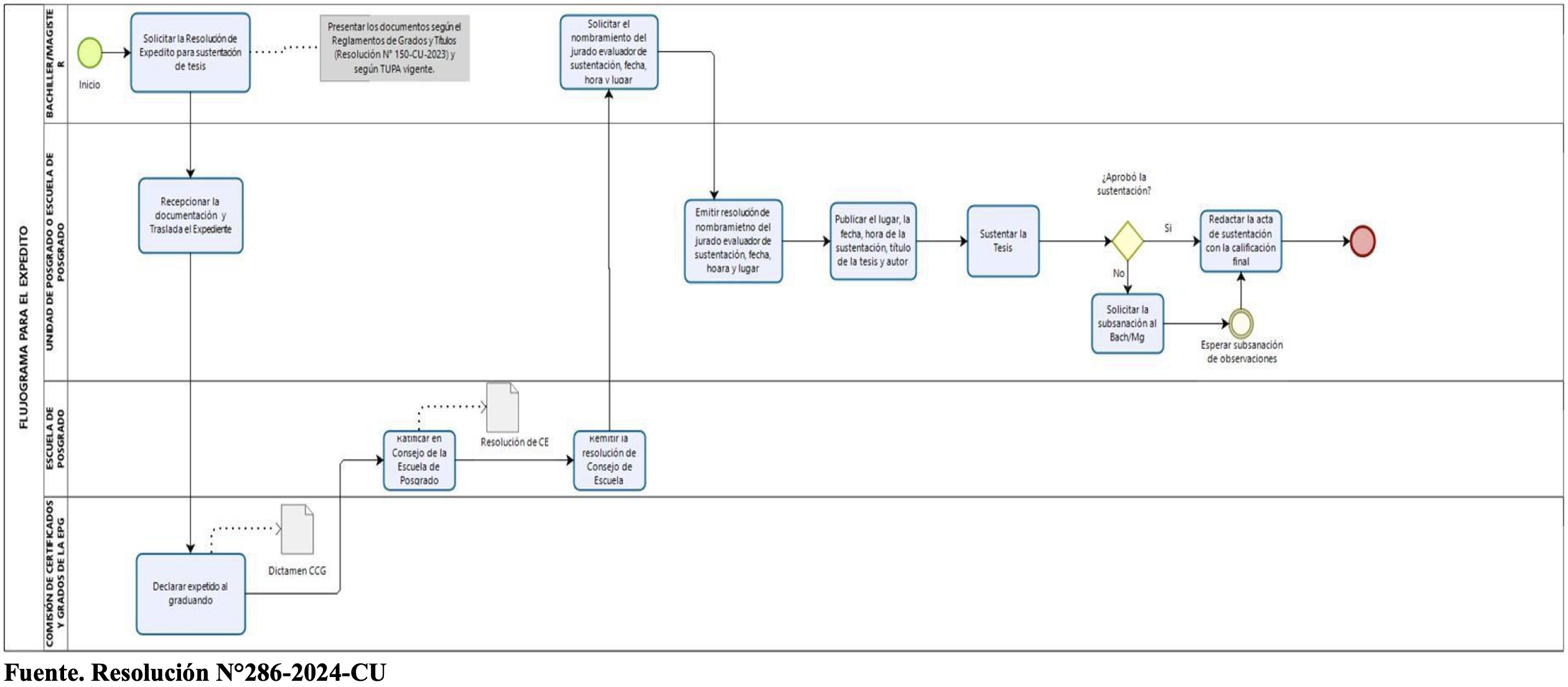 Artículo 27°. Habiendo aprobado el jurado revisor la tesis, el graduando debe solicitar la resolución de expedito para la sustentación de su tesis.
