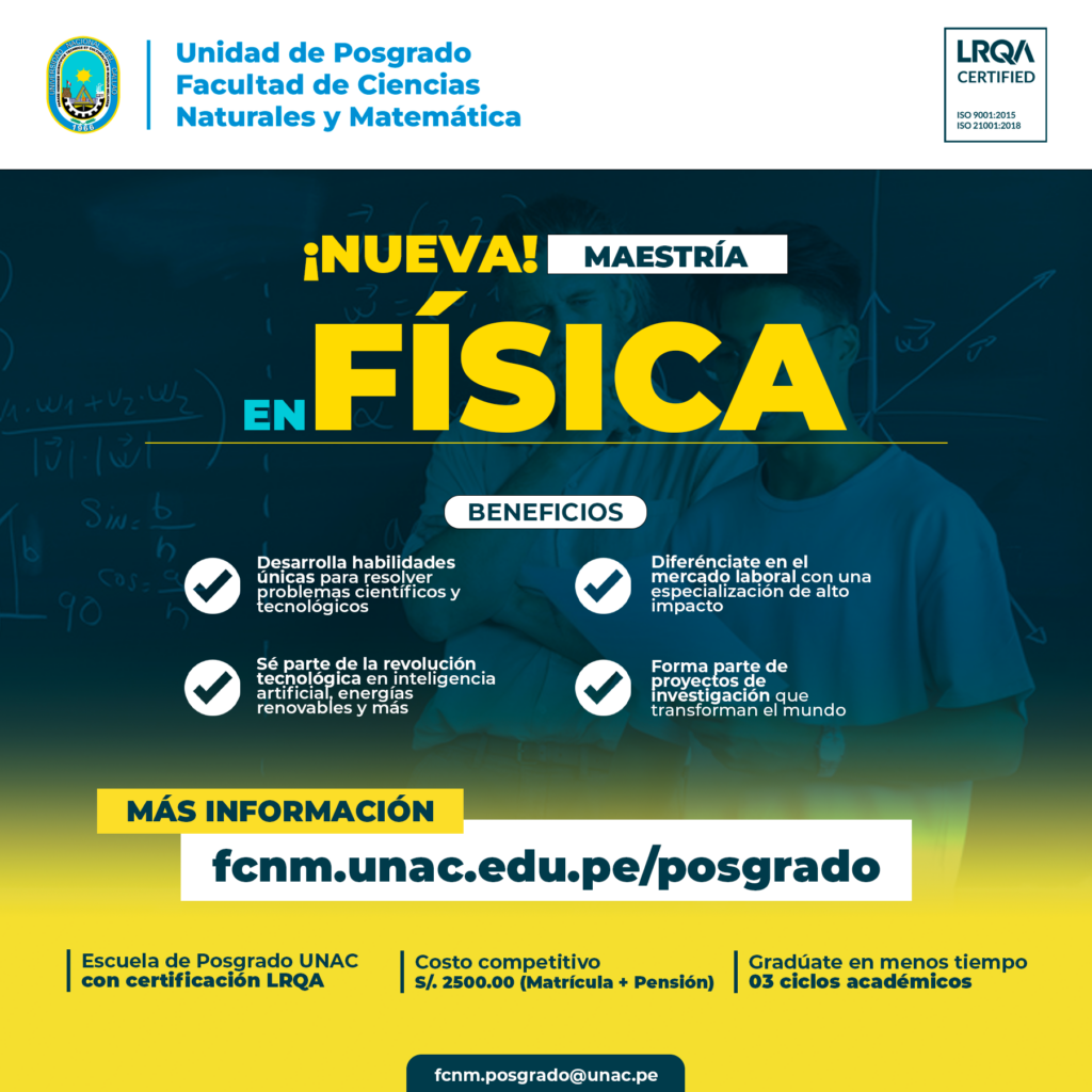 El propósito de la Maestría en Física, es la creación de conocimiento a través de la investigación en temas relacionados a la ciencia, tecnología y desarrollo del país. Los graduados serán capaces de utilizar el método científico de la investigación en empresas privadas, organizaciones gubernamentales y comunidades en desarrollo. La Maestría desarrolla la habilidad de relacionar teorías con aplicaciones prácticas específicas en diferentes contextos regionales o culturales.